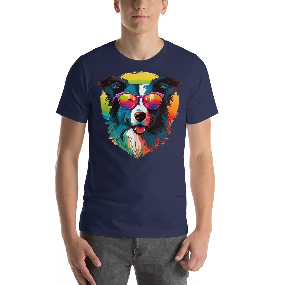 🐾 Unleash your style and show off your love for your border collie with our exclusive design featuring our four-legged friends sporting trendy sunglasses 🕶️ – available in white, grey, navy or black.