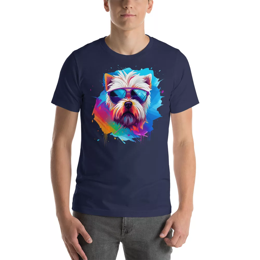 🐾 Unleash your style and show off your love for your west highland terrier with our exclusive design featuring our four-legged friends sporting trendy sunglasses 🕶️ – available in white, grey, navy or black.